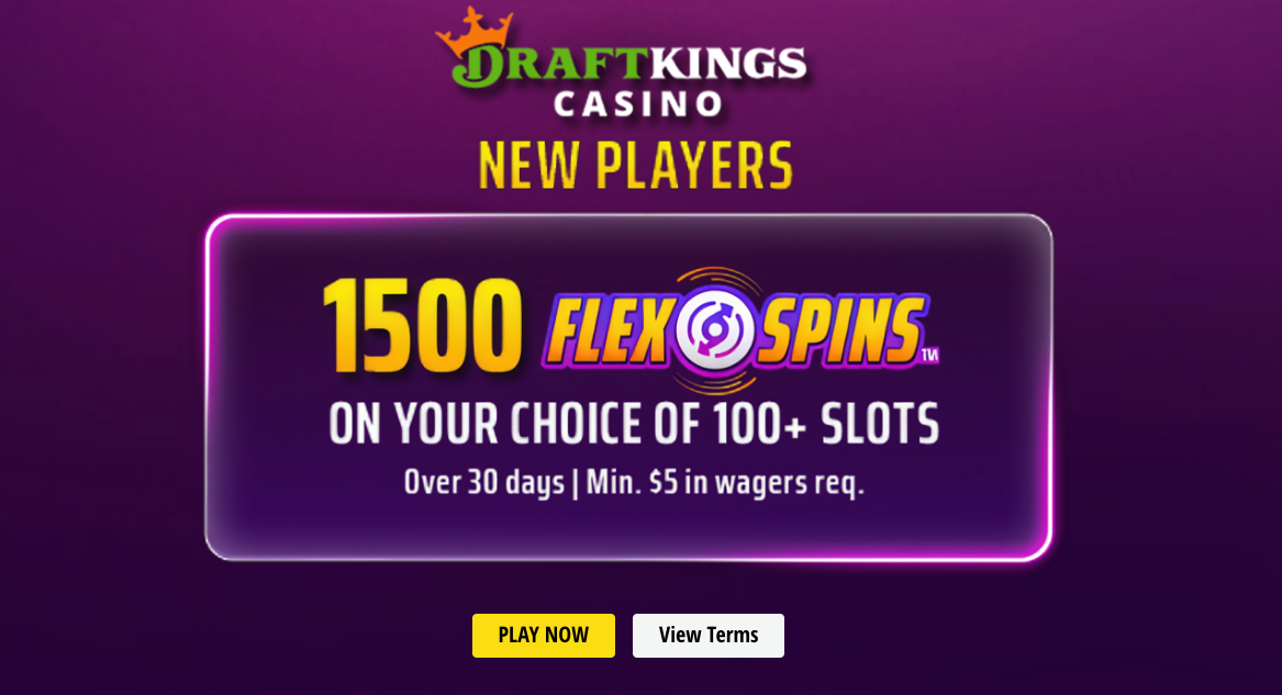 21+. Physically present in MI/NJ/PA/WV only. Eligibility restrictions apply. Void in ONT. New customers only. 1 per new customer. Opt-in req. Min. $5 in wagers req. Max. 1500 Flex Spins issued for choice of Select Games. Spins issued as 50 Spins/day upon login for 30 days. Spins are non-withdrawable and expire 24 hours after choosing Select Game. $0.20 per Spin. Game availability may vary. Terms: casino.draftkings.com/promos. Ends 4/30/26 at 11:59 PM ET. Sponsored by DK.
